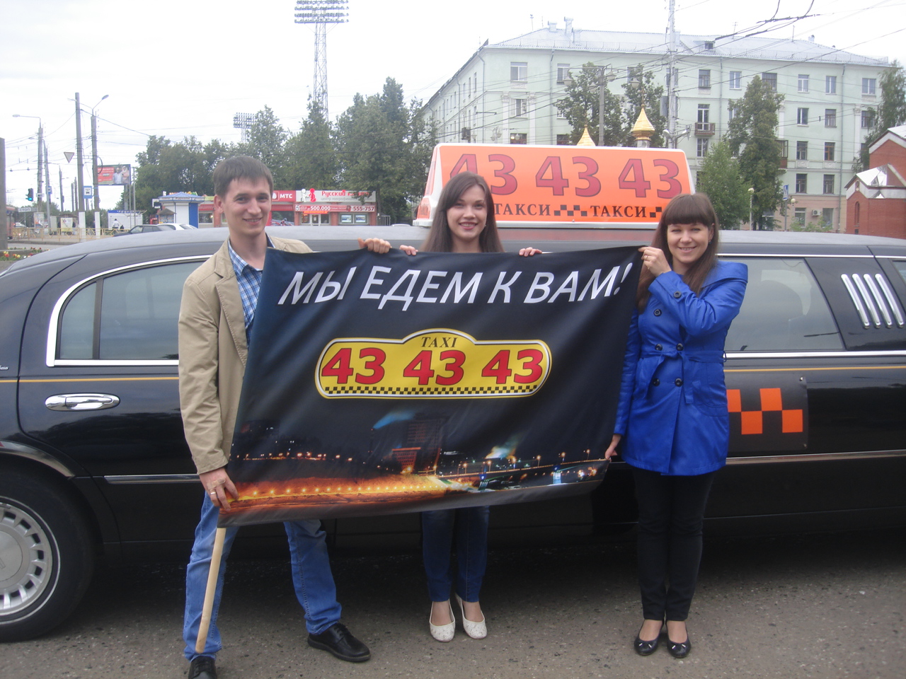 - Команда выходит в эфир, представляется и произносит слоган-рифму о такси 43-43-43.