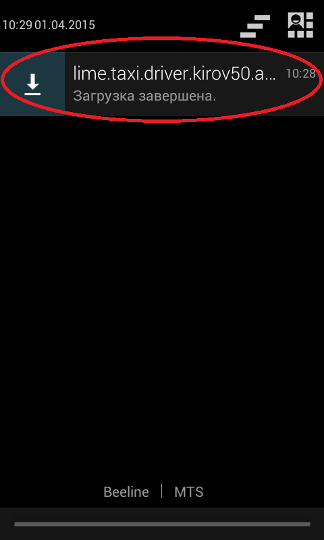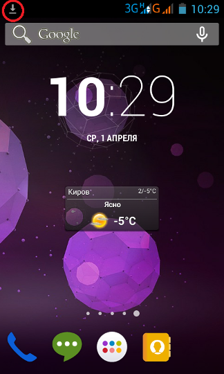 2. В меню уведомлений у Вас появится значок скачанного файла (левый верхний угол) |
