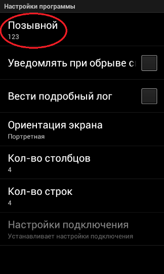 7. Пропишите свой позывной (номер договора), после этого нажмите «Назад» |